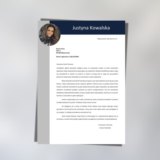 Oferowany na tym ogłoszeniu komplet szablonów CV + list motywacyjny to wzór - 4/22/K.