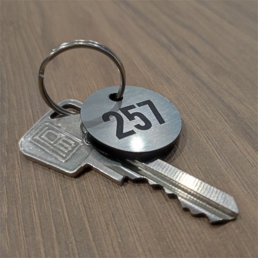 Jednostronnie grawerowany brelok wykonany z laminatu grawerskiego.