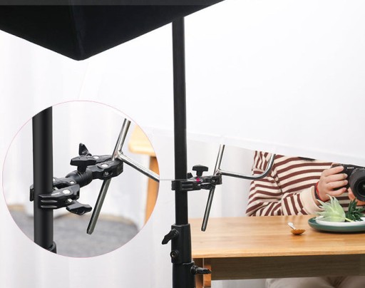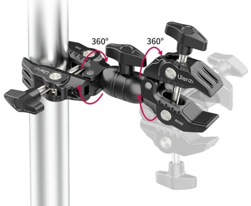 Podwójne imadło umożliwia montaż akcesoriów fotograficznych takich jak parasolki, statywy, selfie sticki, softboxy, lampy LED do wszelkiego rodzaju profili, belek, rurek o średnicy od 12 do 58 mm.