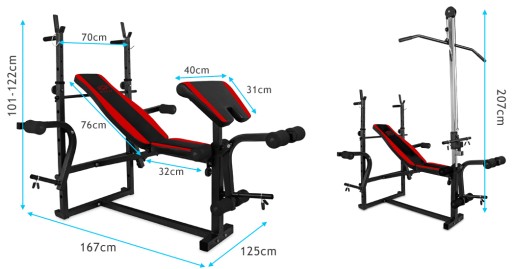 - Wysokość stojaków do sztangi min. 101cm, max. 122cm