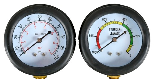 Pozwala na zbadanie stopnia zużycia silnika poprzez doprowadzenie do cylindra sprężonego powietrza i określenie procentowego spadku ciśnienia spowodowanego nieszczelnościami cylindra.
