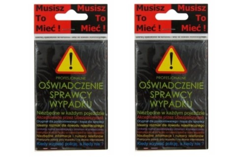 GOTOWE OŚWIADCZENIE SPRAWCY WYPADKU KOLIZJI 2szt.