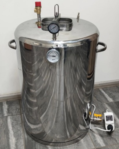 Proces sterylizacji produktów w puszkach w szklanych pojemnikach jest odpowiedzialnym i ważnym punktem. Autoklaw Mega-76 electric może odtworzyć fabryczną technologię obróbki cieplnej w każdej kuchni. Autoklaw wykonany jest ze stali nierdzewnej AISI304 dopuszczonej do kontaktu z żywnością o grubości 2 mm (pokrywa 4 mm). Za ogrzewanie odpowiada element grzejny włoskiej firmy THERMOWATT oraz domowy termostat Troyan. Wystarczy ustawić termostat na żądany tryb pracy (zgodny z recepturą), a termostat włączy i wyłączy grzanie w odpowiednim czasie. Charakterystyczną cechą autoklawu jest wygodna i niezawodna pokrywa. Wciska się go ręcznie tylko jedną śrubą, w przeciwieństwie do starych autoklawów z 7-8 śrubami. Ponadto rosnące ciśnienie dociska pokrywę od wewnątrz, równomiernie rozkładając nacisk na całą powierzchnię pokrywy.
