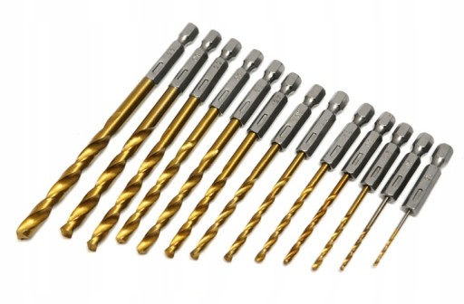 Wysokiej jakości wiertła HSS z chwytem sześciokątnym 1/4 cala. Wiertła pokryte są powłoką TYTANU. Dzięki czemu charakteryzują się większą trwałością i mniejszą ścieralnością.