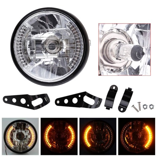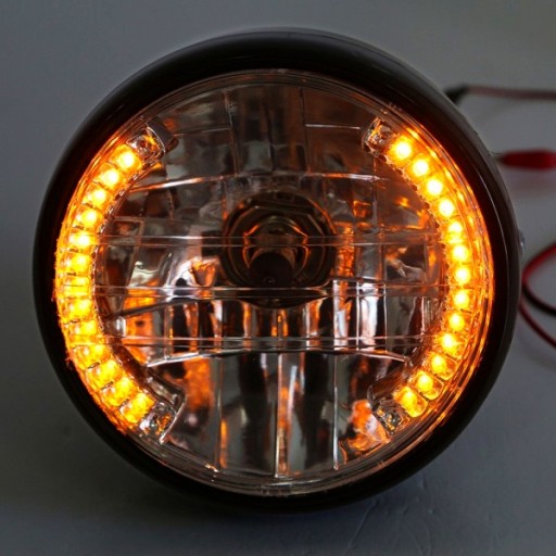 7-calowy okrągły reflektor motocyklowy świateł drogowych / mijania o mocy 35 W z funkcją kierunkowskazów to oryginalna, mocna lampa w stylu vintage.