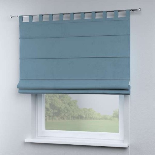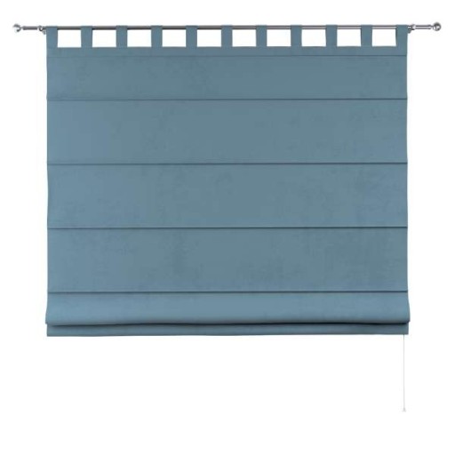 Roleta rzymska Verona na szelkach, do zawieszania na karniszu rurowym. Wykończona na prosto bez falbany. Szelki mają długość 10 cm.