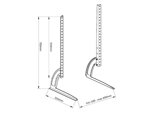 Wsporniki z bezstopniową regulacją wysokości umożliwiają zamontowanie telewizora lub monitora o przekątnej od 32 do 70 cali. Nadaje się również do zakrzywionych ekranów lub telewizorów.
