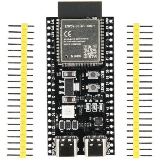Dzięki wbudowanemu programatorowi USB-UART CH343P, programowanie i debugowanie płytki ESP32-S3-DevKit jest szybkie i wygodne. Wystarczy podłączyć moduł do komputera za pomocą przewodu USB-C i skorzystać z popularnych środowisk programistycznych, takich jak Arduino IDE. Dodatkowo na płytce znajdują się przyciski RESET (EN) i BOOT (IO0), które ułatwiają przejście w tryb programowania.