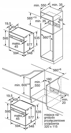 - Wymiary niszy (WxSxG): 585 mm - 595 mm x 560 mm - 568 mm x 550 mm