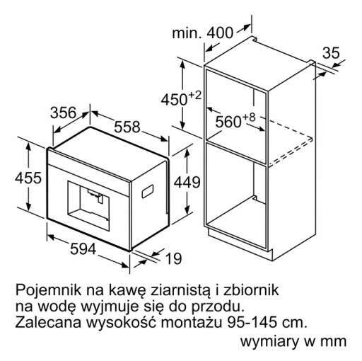 - Wyjmowany pojemnik na skropliny i resztki kawy nadaje się do mycia w zmywarce