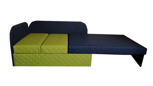 Tapczanik posiada pojemnik na pościel. Górna część tapczaniku jest wysuwana.