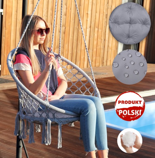 ✅ Korzystanie z fotela wiszącego bocianie gniazdo może być jeszcze wygodniejsze, kiedy na siedzisku pojawi się pasująca i miękka poduszka wykonana przez Polską firmę z najwyższej jakości tkanin wodoodpornych.