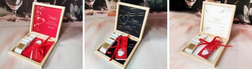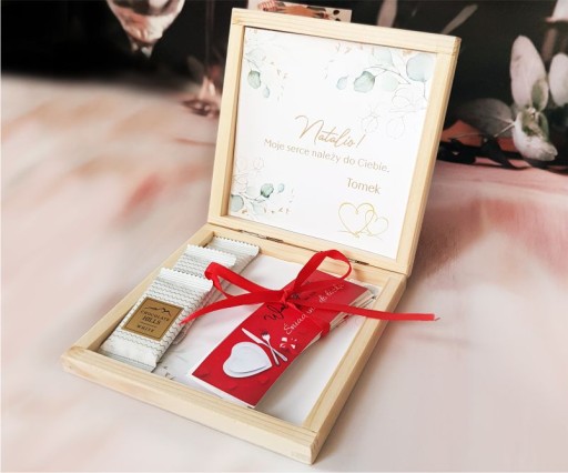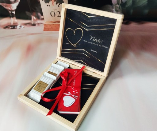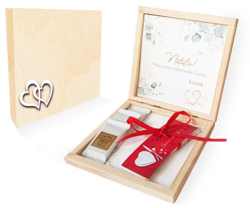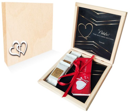 - dwie naklejki na górnej i dolnej części pudełka, górna część zawiera własną dedykację