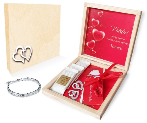 Do pudełka można dołączyć swój własny upominek np. kolczyki czy naszyjnik.