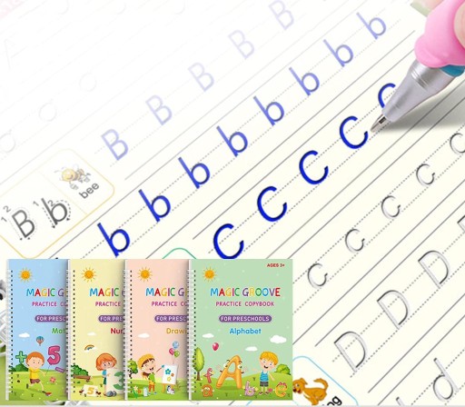 - ✔ 4 książki do nauki pisma odręcznego (alfabet + numery + matematyka + rysunek)
