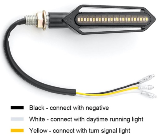 ---> Możliwy jest montaż również z tyłu- nie podłącza się wtedy przewodu od świateł do jazdy dziennej i świeci sam kierunkowskaz.