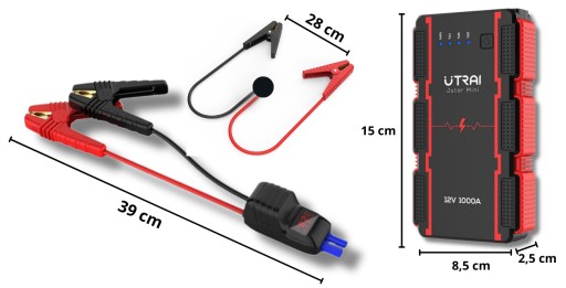 - Mocny rozruch: UTRAI posiada szczytowy rozruch 1000A, co pozwala na szybkie i skuteczne uruchomienie samochodu 12V (benzyna do 4L i diesel do 2,5L)