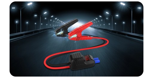 - Inteligentne kable z wyświetlaczem: Kable rozruchowe LED z miernikiem napięcia akumulatora ułatwiają kontrolę stanu akumulatora