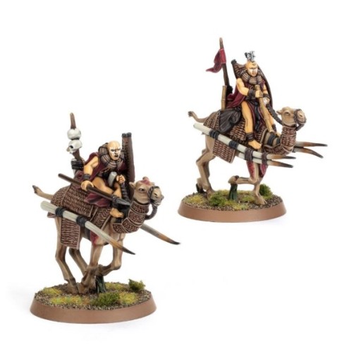 Support your infantry with camel-riding cavalry. Deadly on the charge, both riders are equipped with shields and armour, while one carries a spear and the other a blowpipe which fires toxic darts. If you’re looking for a way to add mobility to your Far Harad army, these Raiders are ideal.