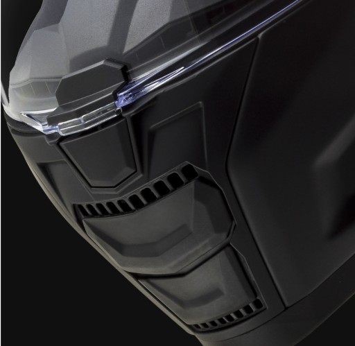 - rozbudowana wentylacja na skorupie kasku: wloty czołowe, tylne dyfuzory, nawiew na brodę z możliwością regulacji