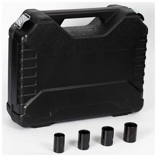Rękojeść oraz część obudowy powleczona jest antypoślizgową gumą, co gwarantuje pewny uchwyt klucza i zwiększa komfort pracy. Korzystne położenie środka ciężkości dzięki uchwytowi na środku klucza udarowego zapewnia pewniejszy chwyt bez męczenia nadgarstka. Klucz zapakowany jest w praktyczną walizkę wykonaną z odpornego na uszkodzenia plastiku , co umożliwia przeniesienie lub przetransportowanie go bez ryzyka uszkodzenia narzędzia.