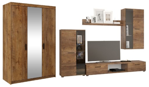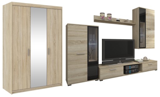 ZESTAW MEBLI MEBLOŚCIANKA + SZAFA Z LUSTREM SONIA DO SALONU POKOJU