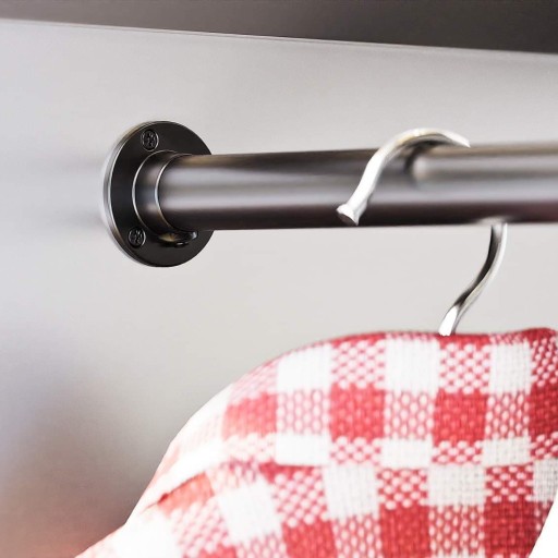 Nowoczesny drążek do szaf oraz garderób z podwieszanymi uchwytami i wkrętami o tym samym wykończeniu, co stalowa konstrukcja.