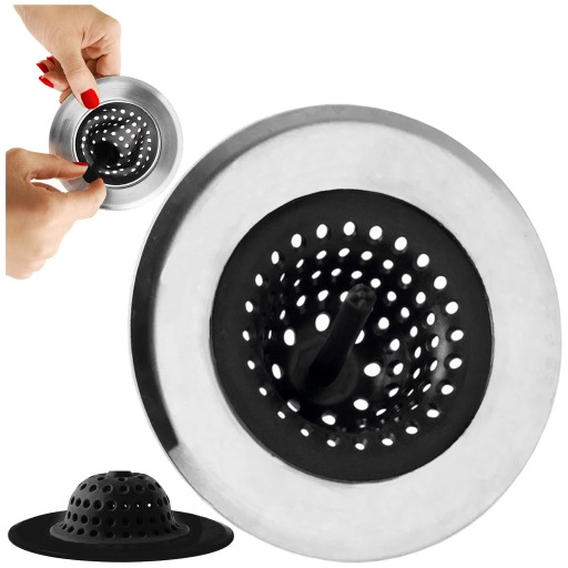 Wygodne sitko wykonane z połączenia odpornej stali nierdzewnej i wysokiej jakości silikonu. Skutecznie zapobiega przedostawaniu się do odpływu resztek jedzenia w zlewie kuchennym lub włosów do odpływu w umywalce łazienkowej.