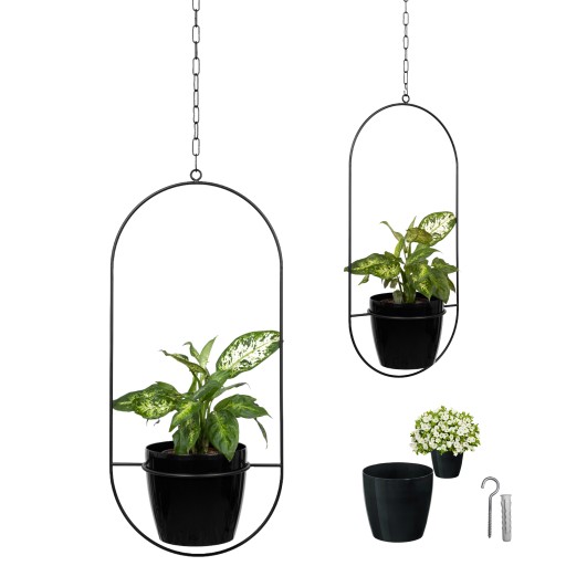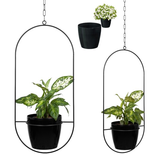 Kwietnik Wiszący na Kwiaty Zioła Sufitowy Metalowy Czarny Doniczka Owal