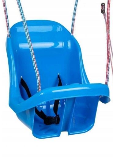 Nasza huśtawka została wyprodukowana z trwałego i dobrego materiału PP oraz wyposażona w mocne sznury z metalowymi zaczepami. Dodatkowo posiada zabezpieczenia przed wypadnięciem dziecka w postaci regulowanego paska zapinanego na klamrę, oraz poprzeczki między nóżkami. Natomiast antypoślizgowa powłoka na siedzeniu i tłoczenia na rączkach pozwolą na pewny chwyt i stabilne siedzenie dziecka. Dzięki zamontowaniu huśtawki w domu Twoje dziecko będzie mogło korzystać z niej bez względu na panujące na zewnątrz warunki atmosferyczne przez cały rok.