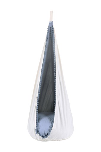 Hamak w kształcie kokonu służy do zwieszenia pod sufitem. Posiada solidny, wzmocniony uchwyt górny, dzięki któremu huśtawka jest bezpieczna w użyciu – utrzymuje ciężar do 80 kg.