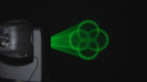 Głowa wyposażona została w koło ośmiu kolorów, rotacyjną i indeksowalną tarczę ✅gobo z siedmioma nowoczesnymi wzorami kształtującymi promień świetlny, a także 4-ramienny, obrotowy pryzmat rozszczepiający wiązkę. Ostrość plamy reguluje elektroniczny focus i manualny zoom.