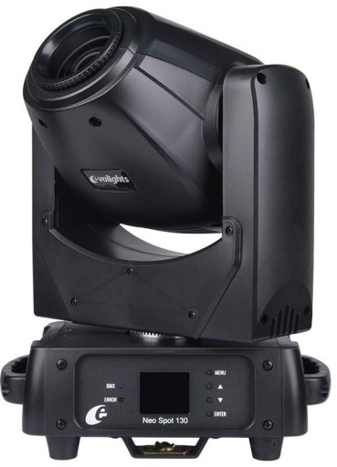 EVOLIGHTS NEO SPOT 130W to ✅profesjonalna estradowa głowica ruchoma LED, której źródłem światła jest biała dioda o mocy 130 watów i temperaturze barwowej na poziomie 9000 Kelwinów.