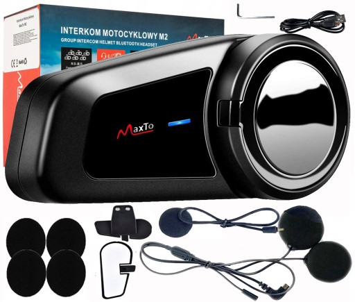 Interkom Motocyklowy MaxTo M2 z Hybrydowym i Integralnym zestawem słuchawkowym !!!