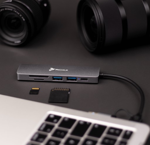 RHUB43AC od marki Reagle to hub z dwoma wtykami, do wyboru USB-A i USB-C, który pozwoli Ci na rozbudowanie swojego ulubionego urządzenia o dodatkowe porty, niezależnie od tego, czy pracujesz przy komputerze stacjonarnym, laptopie, a nawet telefonie. Posiada trzy porty USB-A, do których możesz podłączyć pendrive’a lub dysk twardy, by zgrać dane z nośnika pamięci, albo mysz i klawiaturę dla większego komfortu pracy. Czytniki kart SD i micro SD zaoszczędzą konieczność korzystania z dodatkowych adapterów. Dodatkowy port USB-C umożliwia podłączenie zasilania, co pozwala na podłączenie urządzeń o większym zapotrzebowaniu na energię, np. dyski zewnętrzne.