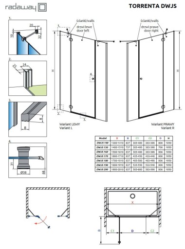 - kabinę można zamontować zarówno na brodziku, jak i bezpośrednio na podłodze