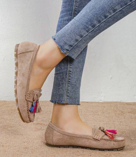 BALERINY DAMSKIE ZAMSZ MOKASYNY CHWOSTY BEŻOWE 38