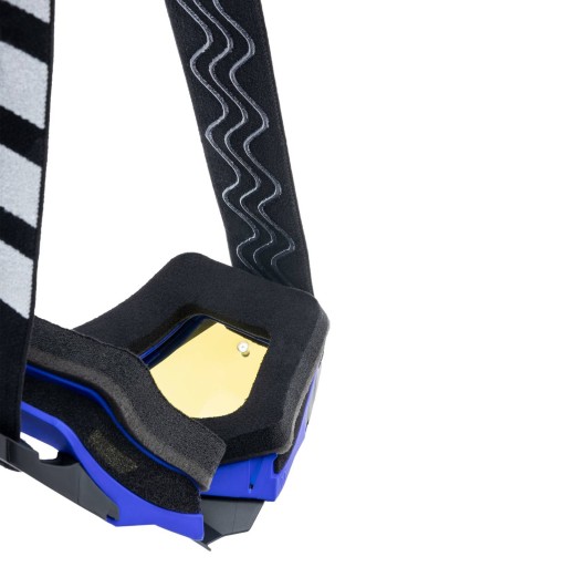 - Szeroki pasek (45 mm) z silikonowym nadrukiem od wewnątrz zapobiegającym zsuwaniu się gogli z kasku