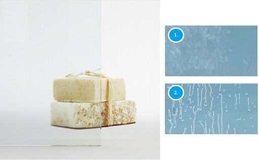 Dzięki właściwościom hydrofobowym krople wody nie utrzymują się na powierzchni szkła, tylko spływają, nie pozostawiając osadów.