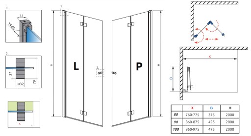 - Zawias rurowy umożliwia otwieranie drzwi do wewnątrz i na zewnątrz kabiny.