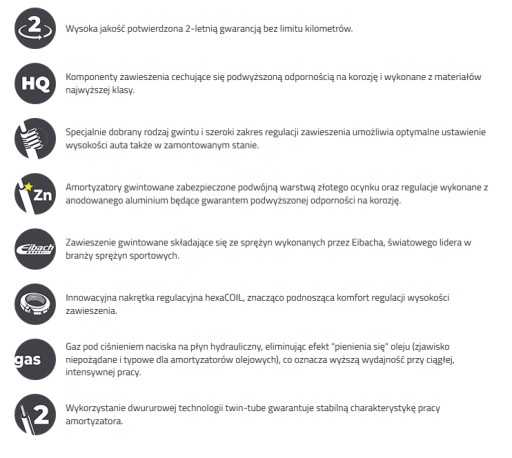 Fabrycznie nowe zawieszenie gwintowane / gwint do: