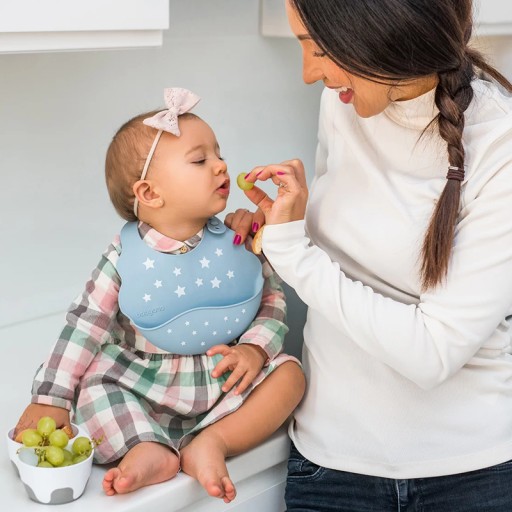 Miękki i delikatny śliniak skutecznie ochroni ubranko Twojego dziecka przed zabrudzeniem w trakcie jedzenia. Ma praktyczną kieszeń, która zatrzymuje spadające resztki pokarmu. Śliniak został wykonany z miękkiego, lekkiego i bezpiecznego tworzywa. Jest łatwy do utrzymania w czystości, można go myć w zmywarce. Jest elastyczny, co pozwala na wygodne złożenie go w małą kostkę, idealną do umieszczenia w torbie dla mamy.