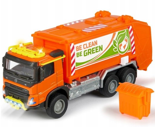 Metalowa śmieciarka na licencji Volvo z funkcją światła i dźwięku. Dodatkowo samochód posiada otwierane górne jak i tylne drzwi, ruchomy pojemnik na śmieci. Długość: 19 cm. 3l .