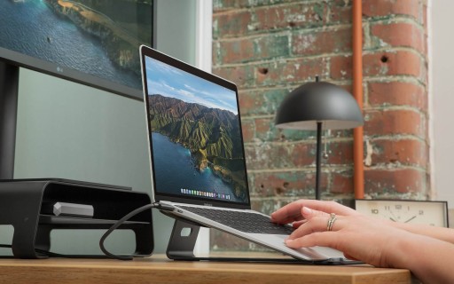 • Stojak umożliwia łatwy dostęp do przyłączy MacBook, co czyni go praktycznym towarzyszem podróży