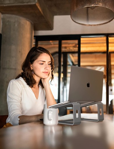 • Ergonomiczna konstrukcja – smukła, kompaktowa podstawka podnosi laptopa o 15,2 cm do idealnej wysokości oczu i zapobiega zawieszaniu na ekranie, co zmniejsza bóle karku i ramion. Ponadto krawędź stojaka jest tak gładka, że Twój komputer jest chroniony przed zarysowaniami.