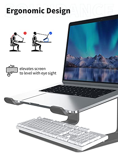 Soundance Stojak na laptopa, aluminiowa podwyższenie komputera, ergonomiczny stojak na laptopa, do biurka, metalowy uchwyt, kompatybilny z laptopami o przekątnej 10 do 15,6"