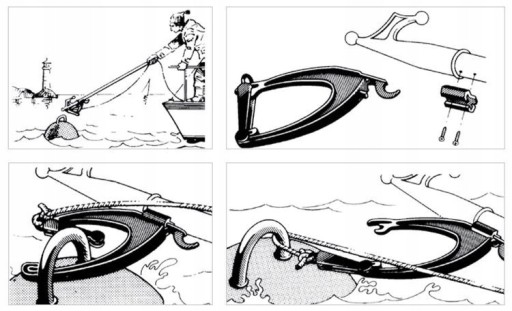 Praktyczny przyrząd do nabiegowego chwytania bojki i przewlekania liny cumowniczej.