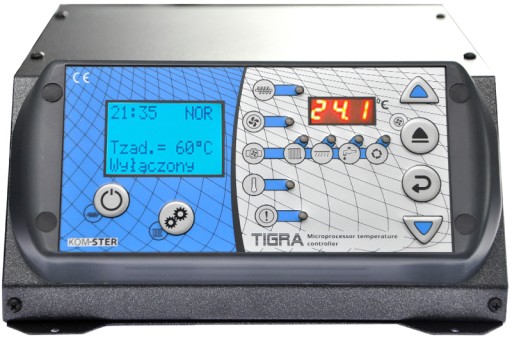 Sterownik "TIGRA" powstał z myślą o wymagających użytkownikach, którzy szukają wygody i komfortu użytkowania. Bardzo estsetyczna, metalowa obudowa lakierowana proszkowo, zdejmowany panel sterujący, duży kolorowy wyświetlacz LCD wspomagany przez drugi, niezależny wyświetlacz LED pokazujący cały czas aktualną temperaturę zadaną, obsługa czterech pomp, sześć wbudowanych fabrycznie czujników, współpraca z panelami zdalnego sterowania to tylko część zalet wyróżniających ten model spośród innych konstrukcji.