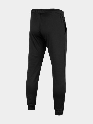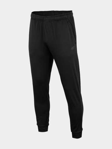 Spodnie treningowe męskie 4F w kolorze czarnym, z małym logiem, długa nogawka.