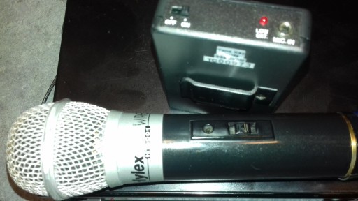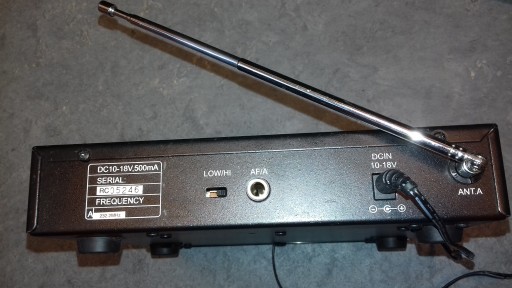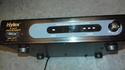Sprawny nadajnik / mikroport HT-003 i mikrofon HT-001. Model odbiornika jak w tytule. Nadają na częstotliwości VHF 232,200 MHz szerokim FM'em - można odbierać w zwykłym walkie-talkie z tym zakresem. Odbiornik HR-101T jest uszkodzony - włącza się i działa ale przerywa odbiór. Do naprawy lub na części. Zasilacz w komplecie.